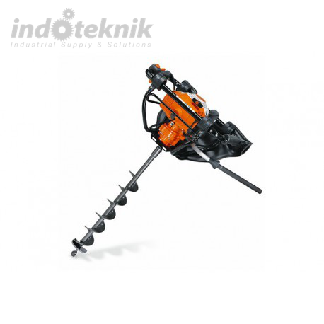 - The earth auger is powered by a two-stroke engine and is equipped with a brake that prevents the bit from spinning out of control if it becomes stuck.